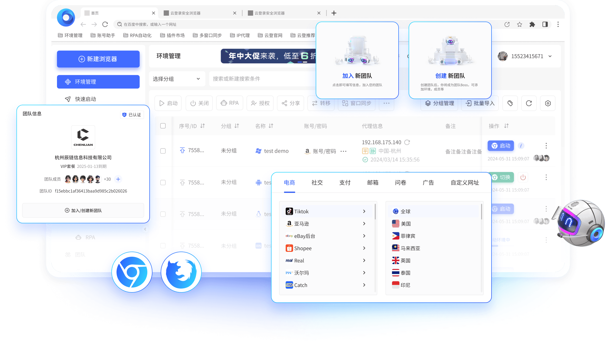 Yunlogin指纹浏览器支持Chrome 107-131内核和Firefox 130内核